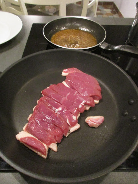 With dinner time drawing close, I decided to go and take the Duck Breast out of the fridge in the vain hope that it might come to 'room temperature' which was probably no more than 6C. Ha! 3C outside, 6C inside.